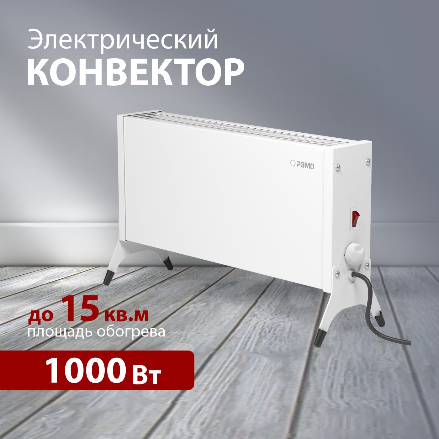 Конвектор (обогреватель) электрический РЭМО "Такса" СБ-1000.1, белый (Х-элемент)