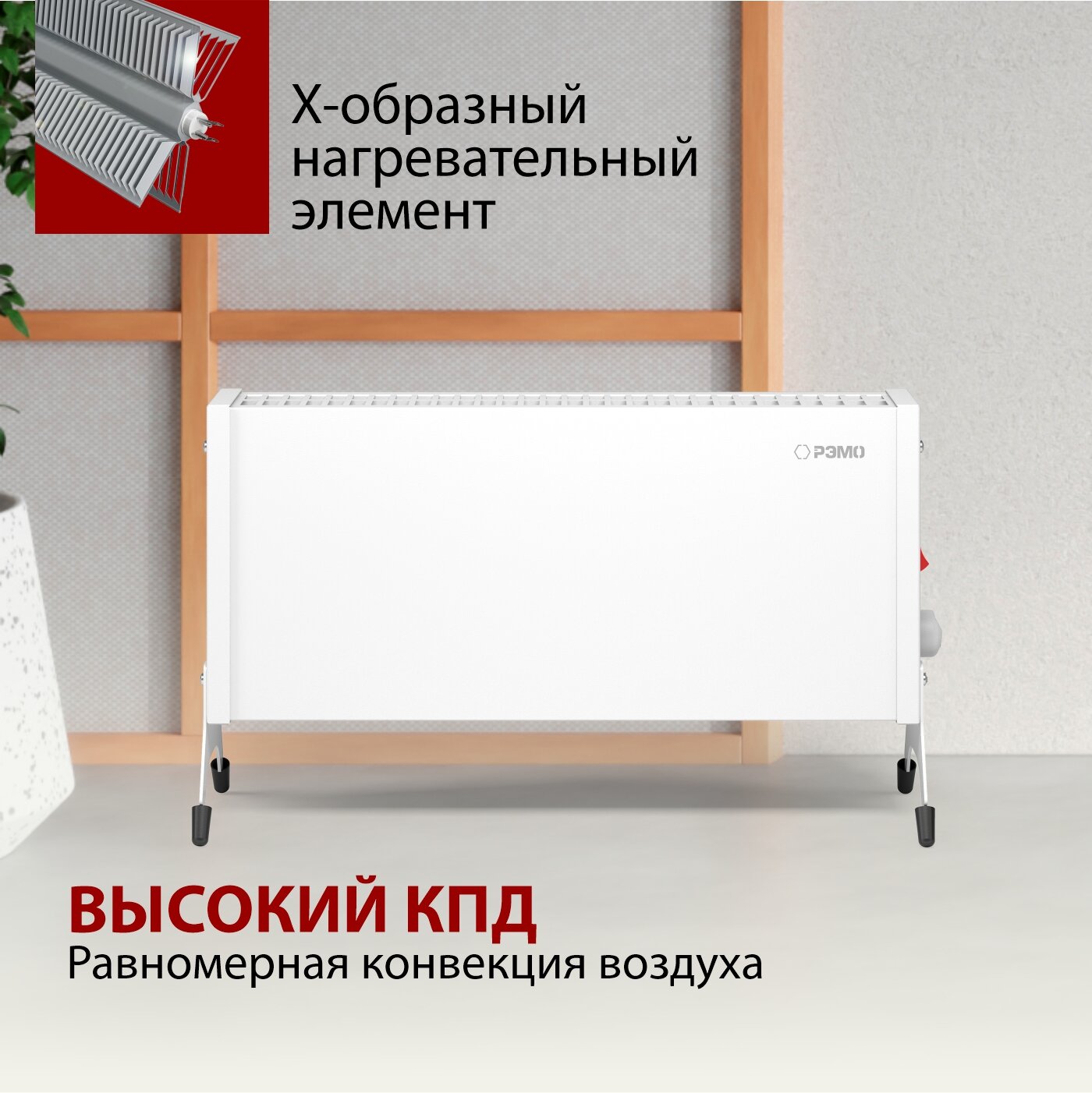 Конвектор - обогреватель электрический РЭМО "Такса" СБ-1500.2, белый (Х-элемент)