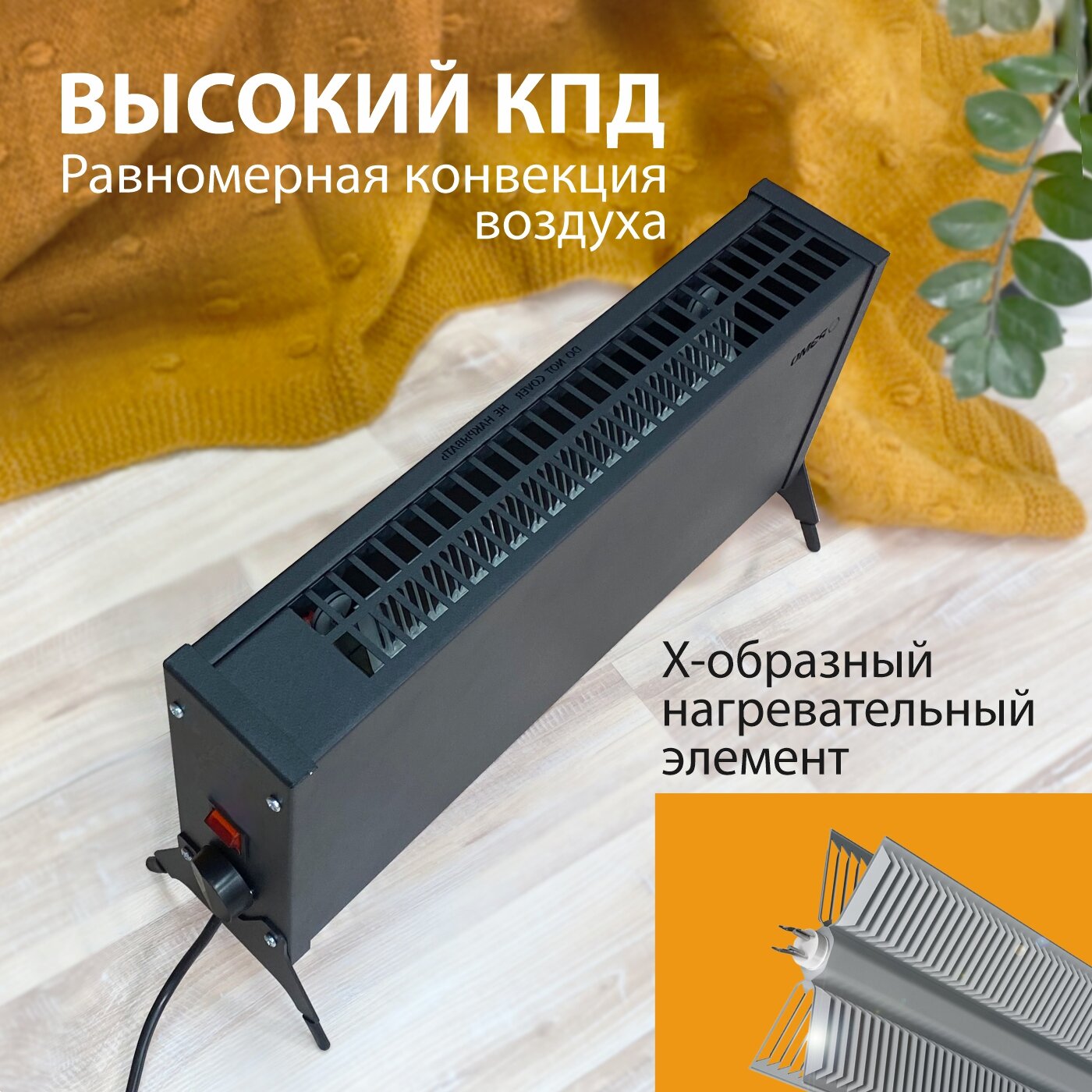 Конвектор - обогреватель электрический РЭМО "Такса" СБ-1500.2, черный(Х-элемент)