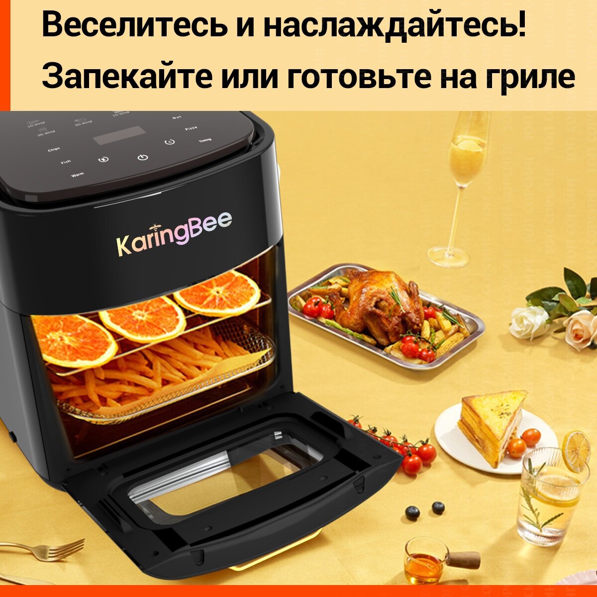 Аэрогриль электрический KaringBee JD989 черный(ЕАС-сертификат)/объем 15 л/1400 Вт/100 вкладышей в подарок
