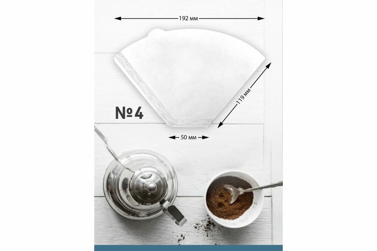 Фильтры для кофе бумажные отбеленные №4 одноразовые 100 шт, для капельных кофемашин