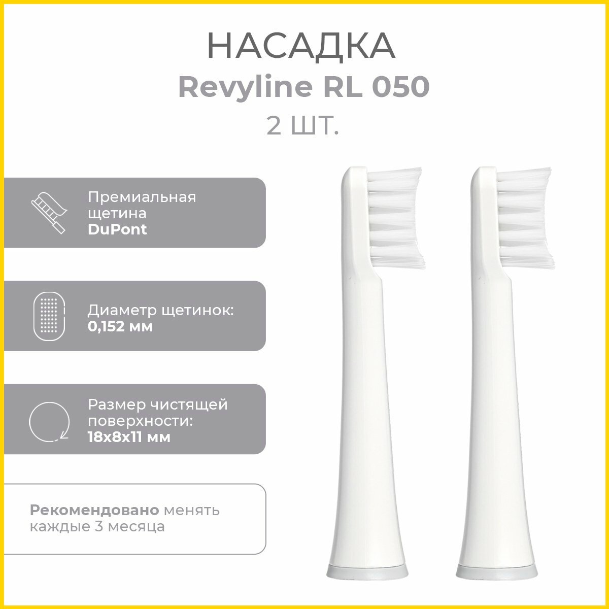 Сменные насадки для электрической зубной звуковой щетки Revyline RL 050,серые,2шт, Ревилайн