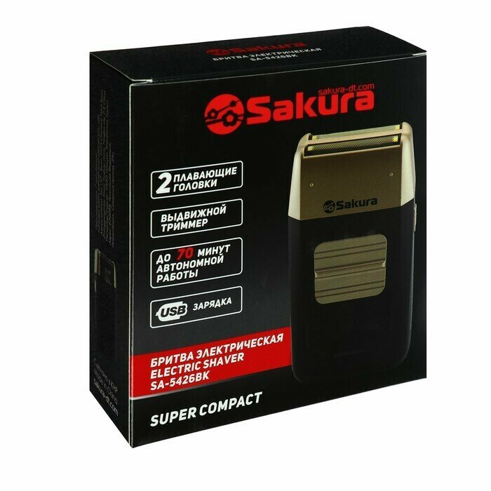 SAKURA Электробритва Sakura SA-5426BK, сеточная, 2 плавающие головки, сухое бритьё, черная