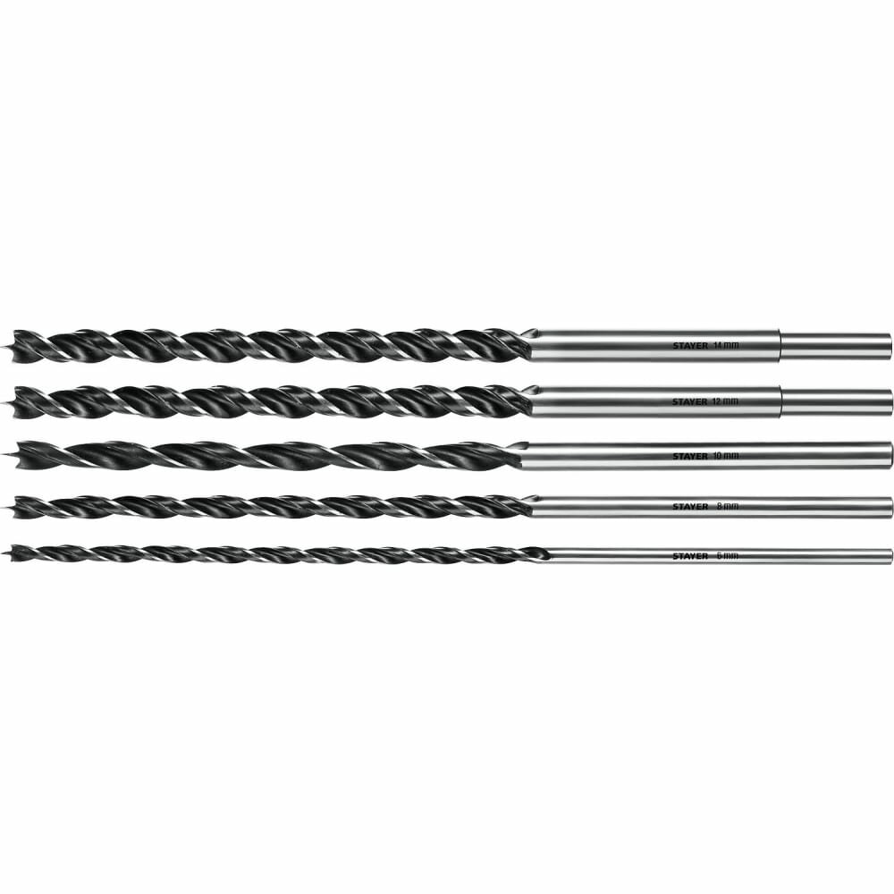 STAYER Maxdrill 5 шт, 6-8-10-12-14 х 300 мм, набор сверл спиральных по дереву