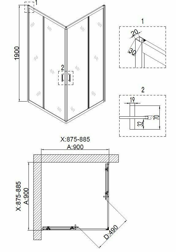 Душевое ограждение Niagara NG-6608-08 (90*90*190) квадрат, двери раздвижные