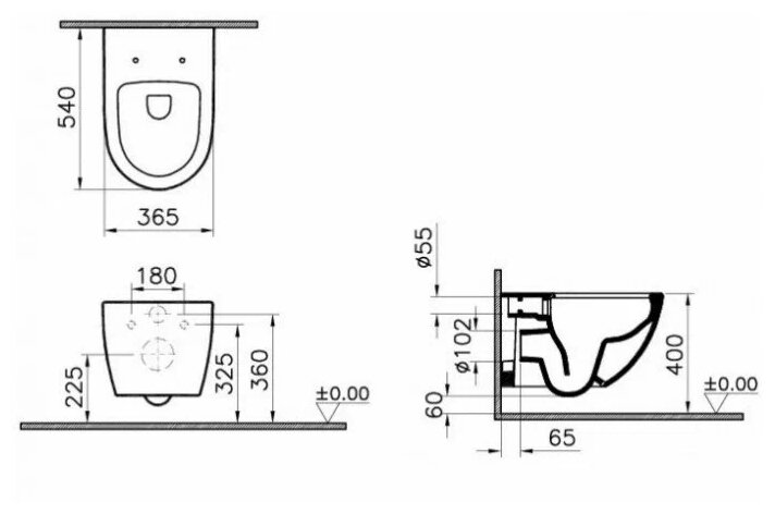 Унитаз с инсталляцией VitrA Sento 9830B003-7207 безободковый