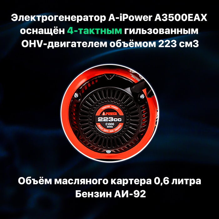 Генератор бензиновый A-iPower A3500ЕАХ 3кВт, 230В/50Гц, электростартер