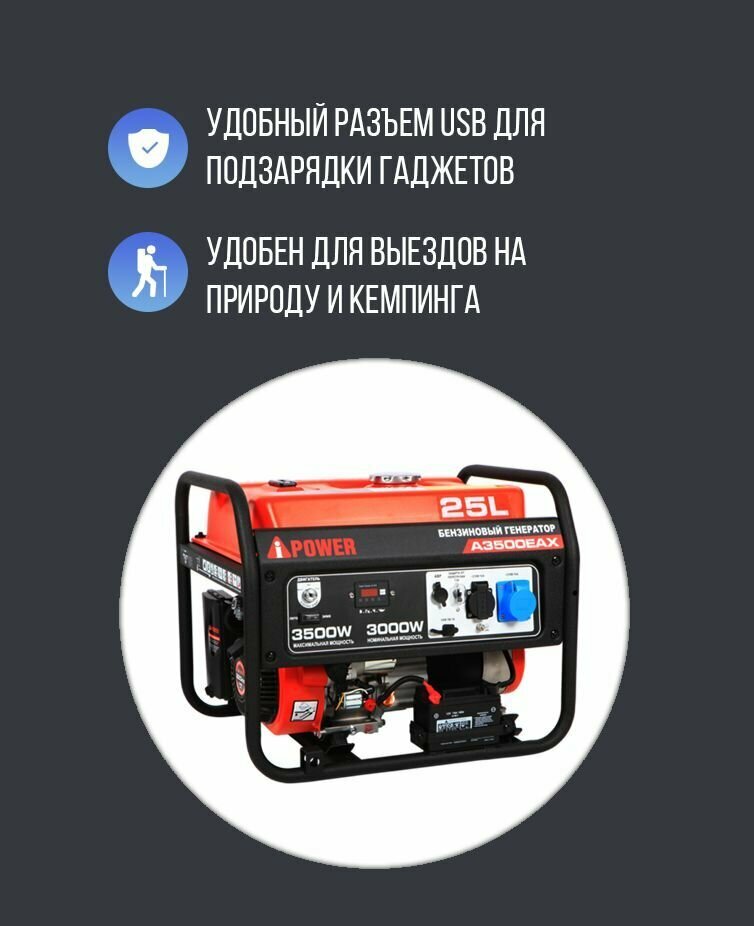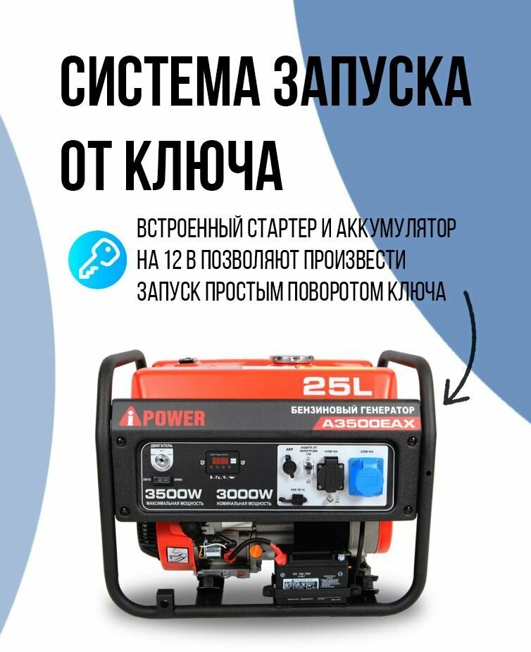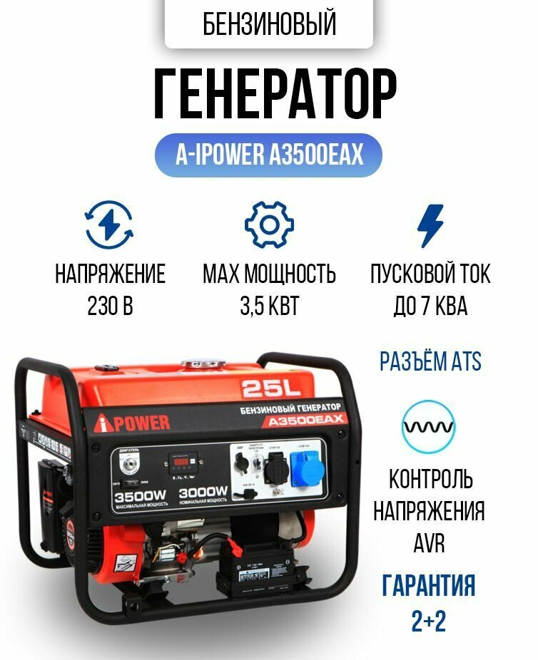 Бензиновый генератор A-iPower A3500ЕАХ 3кВт, 230В/50Гц, электростартер (20117) A-iPower