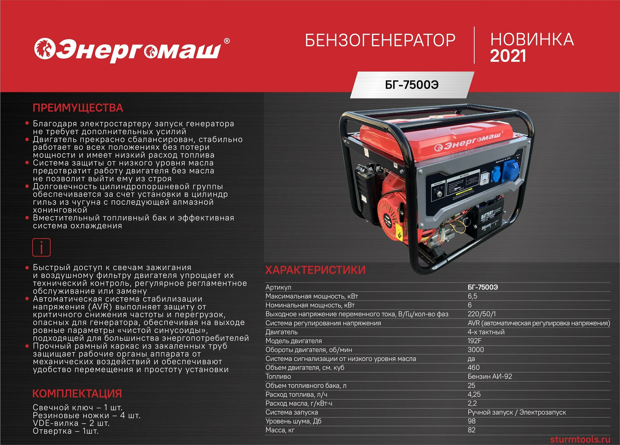 Генератор бензиновый энергомаш БГ-7500Э интересное: