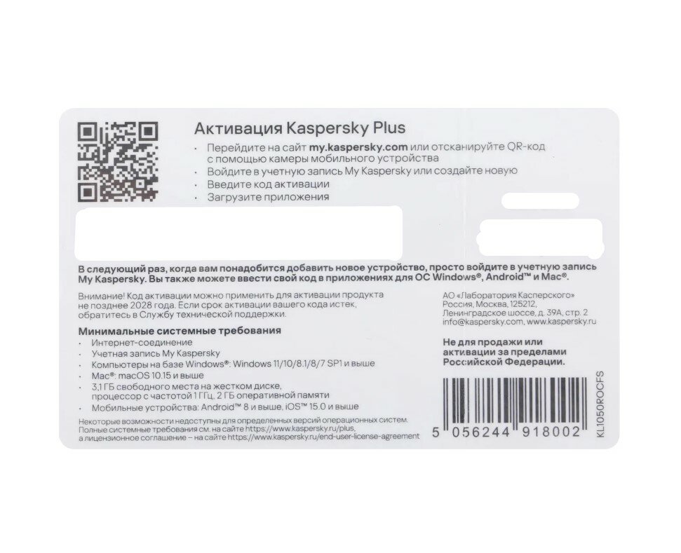 Антивирусное ПО Касперский Kaspersky Plus KL1050ROCFS