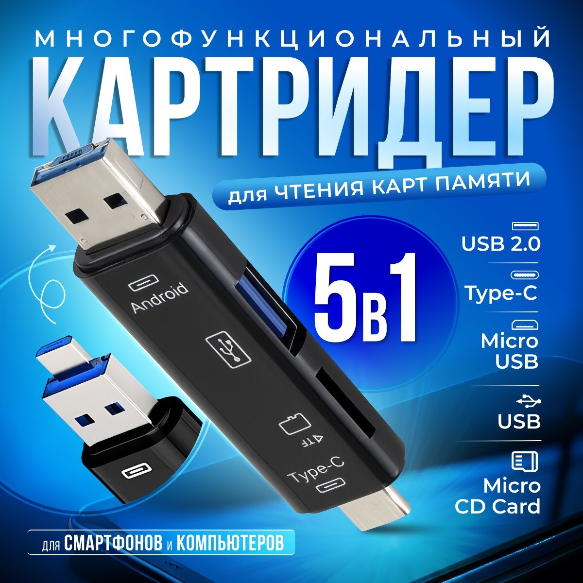 Картридер ридер 5 в 1 / адаптер-переходник универсальный, черный цвет интересное: