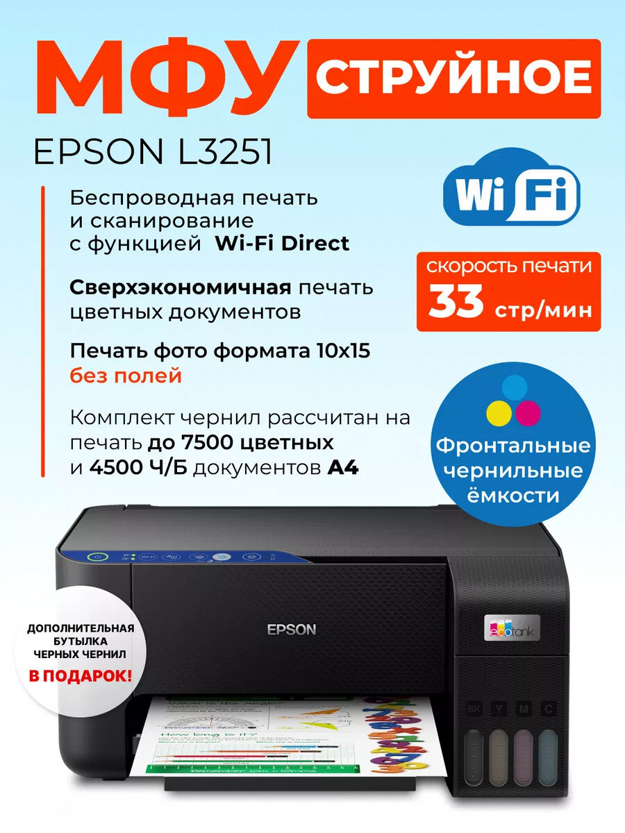 МФУ струйное Epson L3251 (103) (C11CJ67419) интересное: