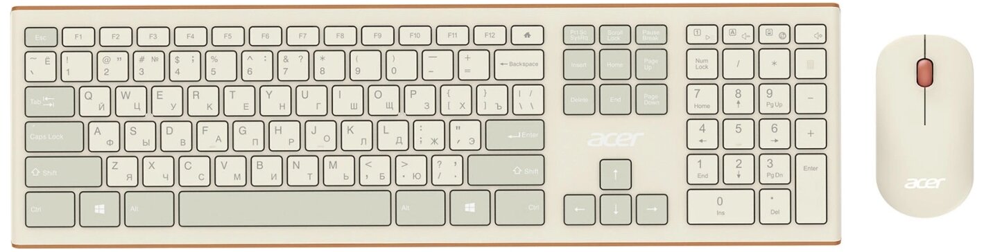 Набор клавиатура+мышь Acer OCC200 кл/мышь:беж/коричн WLS slim(ZL.ACCEE.004)