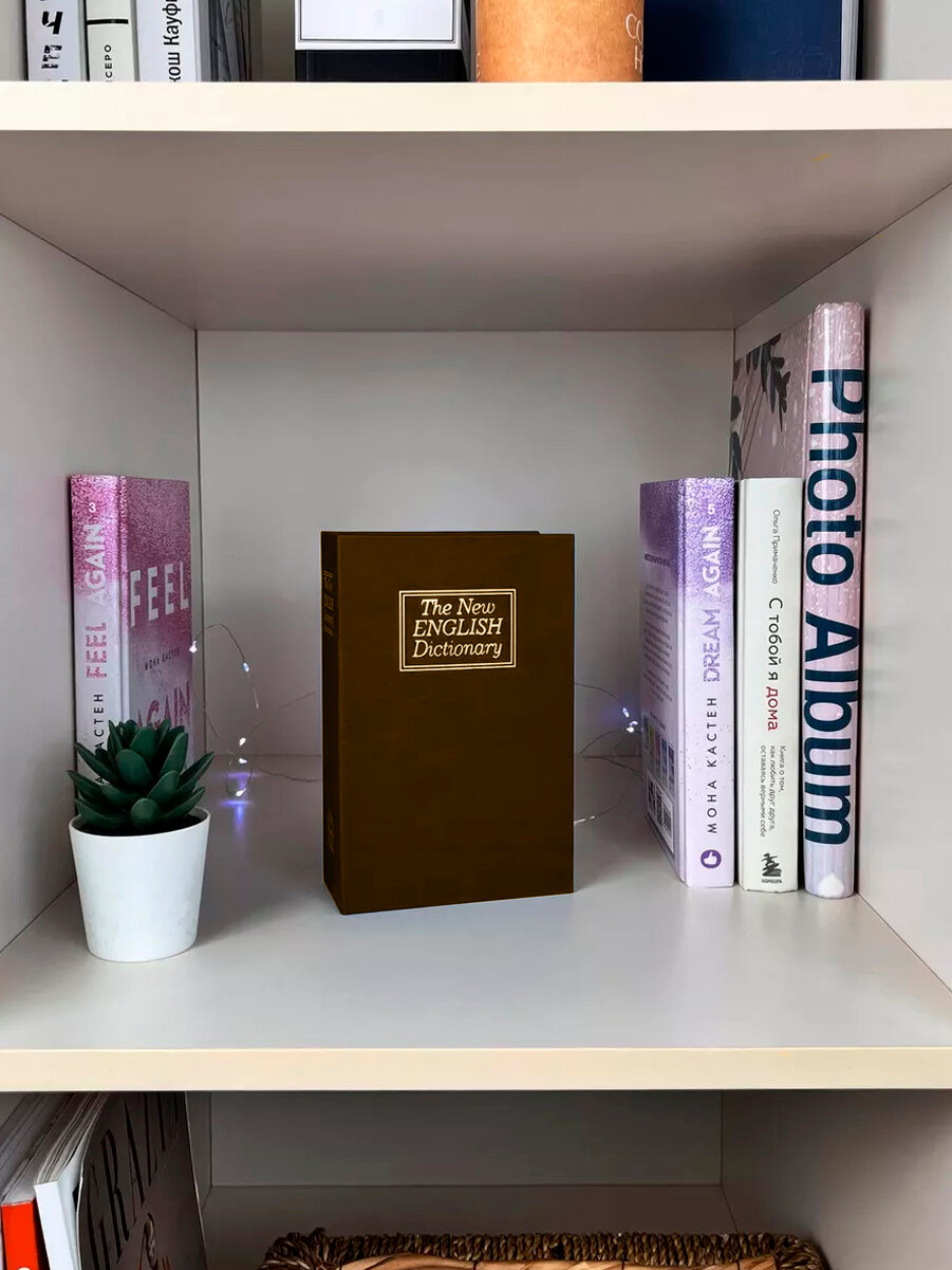 Механический сейф-книга (шкатулка) "BookSafe", маскированный замок, для денег и документов, в дом или офис, коричневый