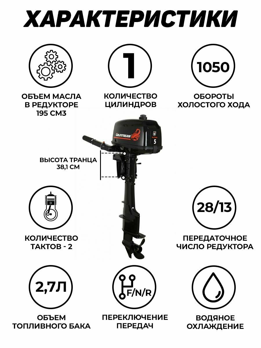 Лодочный мотор Golfstream T 5.0 BMS (завод PARSUN), бензиновый, 2-х тактный, 5 л.с. интересное:
