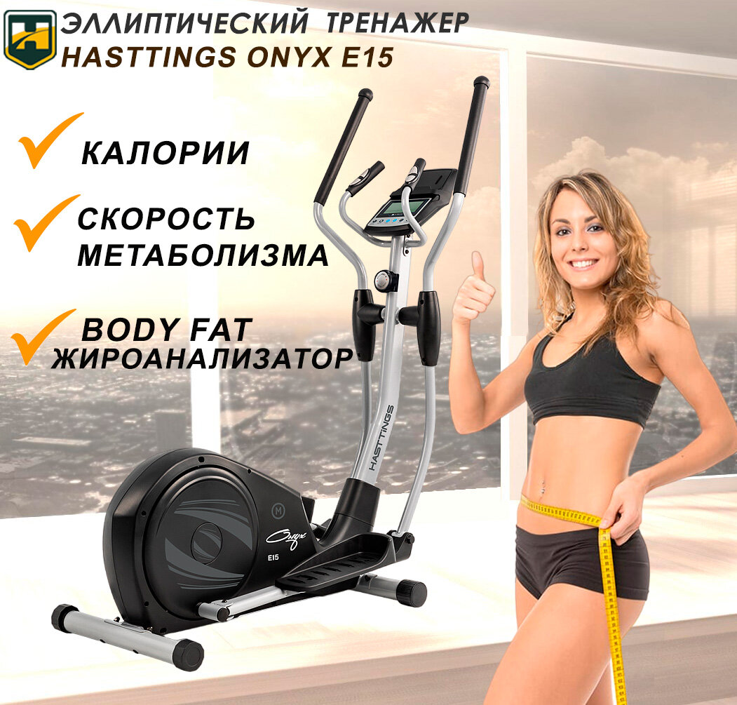 Эллиптический тренажер Hasttings E15 ONYX - до 130 кг/ без подключения к сети/жироанализатор/ до 700 ккал. за 1 ч/8 уровней сопротивления