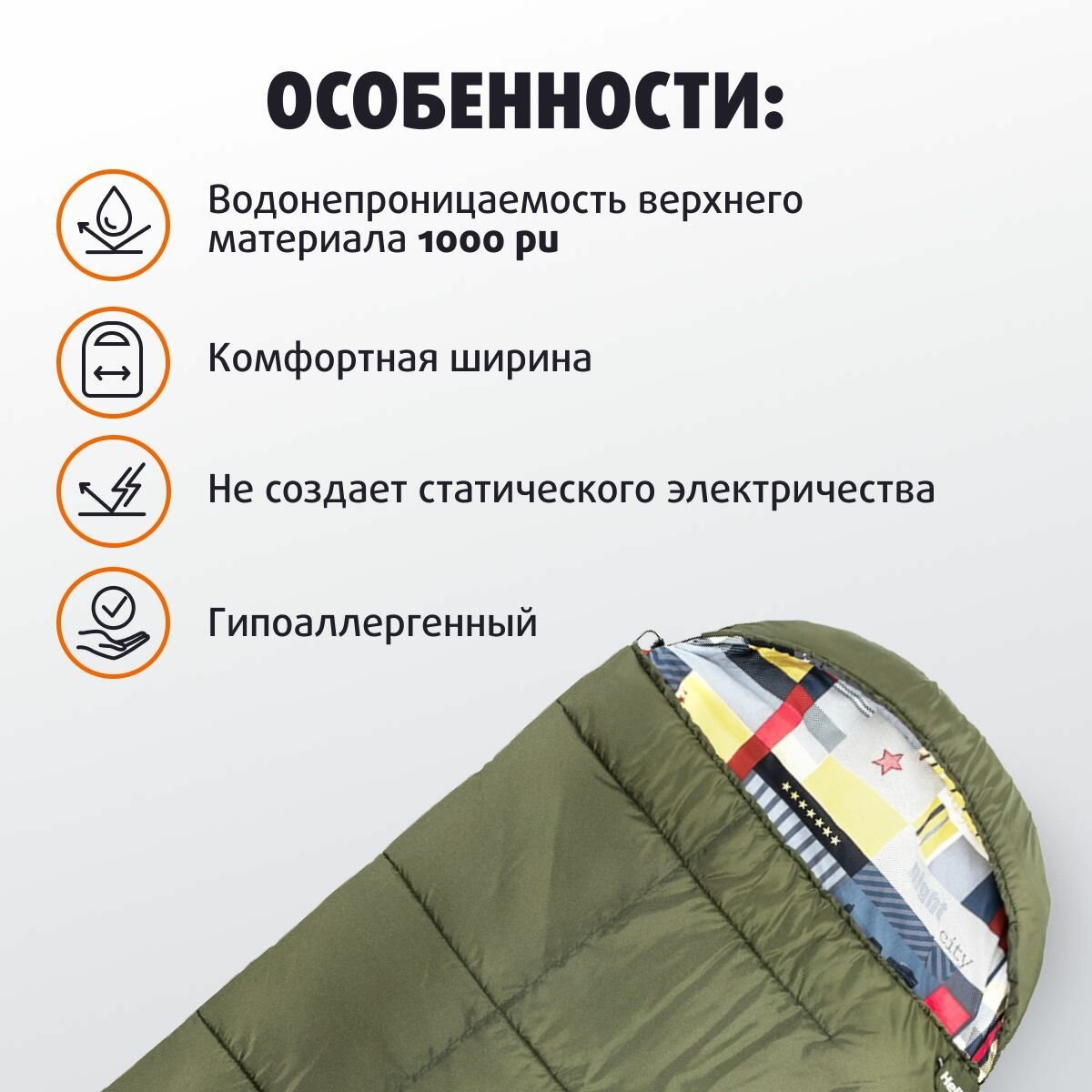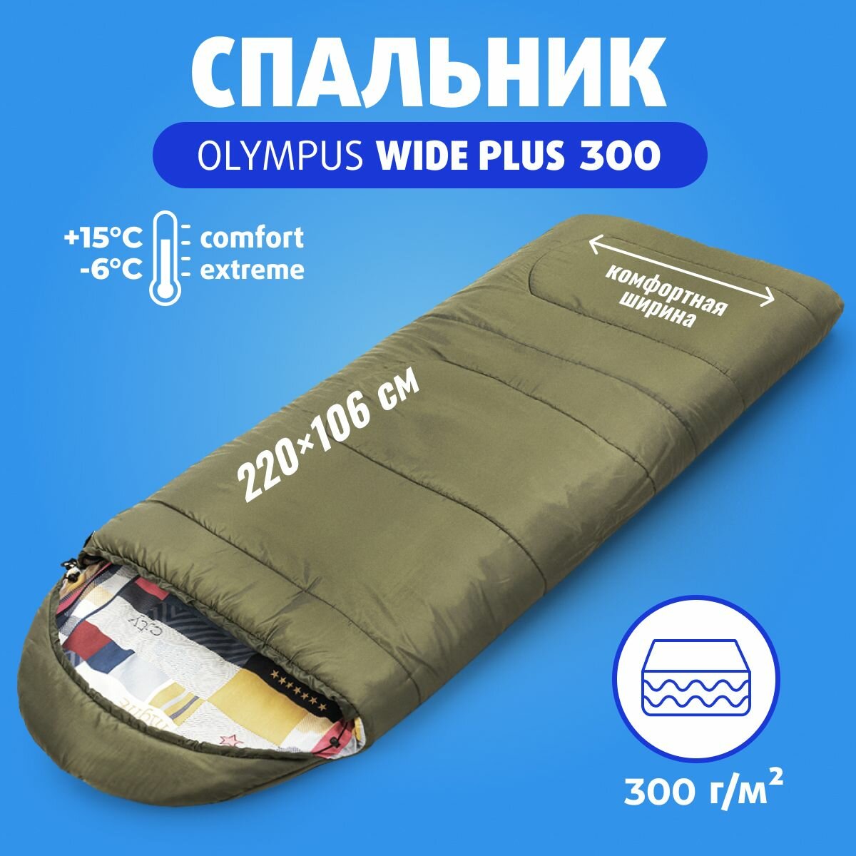 Спальный мешок "Helios" Olympus Wide Plus 300 (220*106, холлофайбер) зел./город, T-HS-SB-OWP-300-NC интересное: