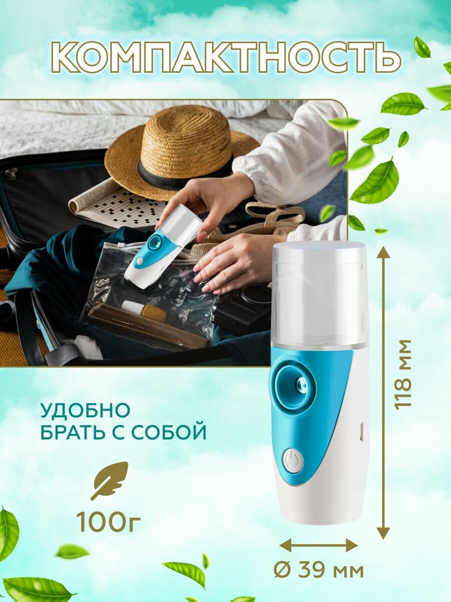Ингалятор небулайзер детский/взрослый портативный, бесшумный, паровой, аккумуляторный, переносной с насадками/от простуды, для профилактики и лечения заболеваний носа и горла интересное: