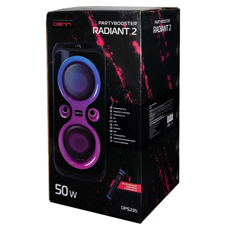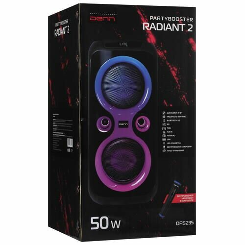 Купить Портативная акустика Denn Partybooster Radiant 2 (DPS235), 50Вт, беспр мкф