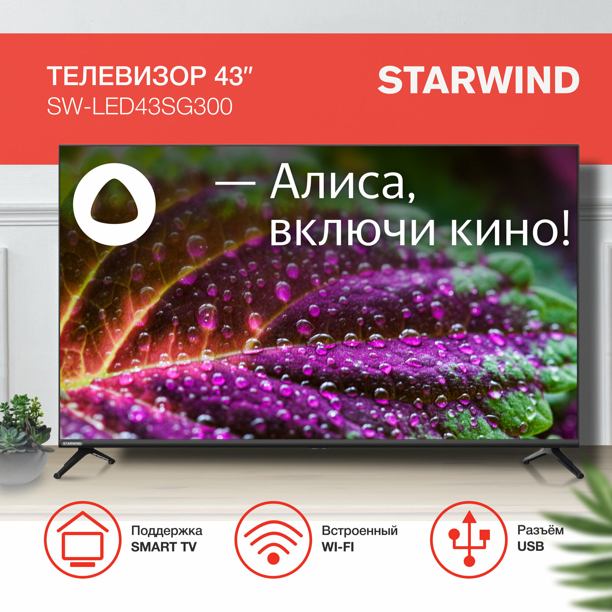 Телевизор Starwind SW-LED43SG300;43 дюйма;Смарт ТВ;Wi-Fi;с Алисой;4k;4к