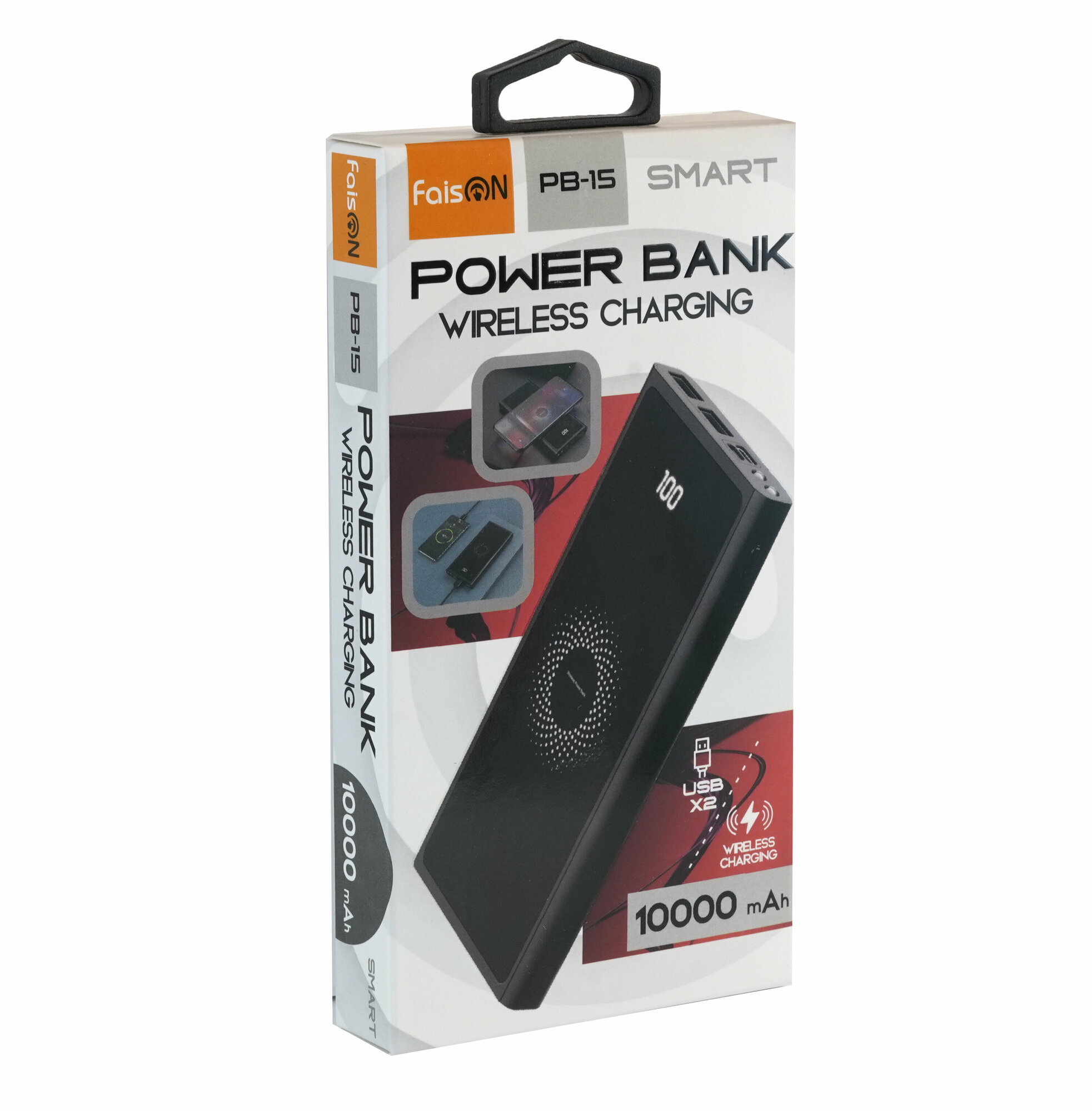 Внешний аккумулятор Powerbank FaisON PB-15, Smart, 10000mAh, есть беспроводная зарядка, чёрный