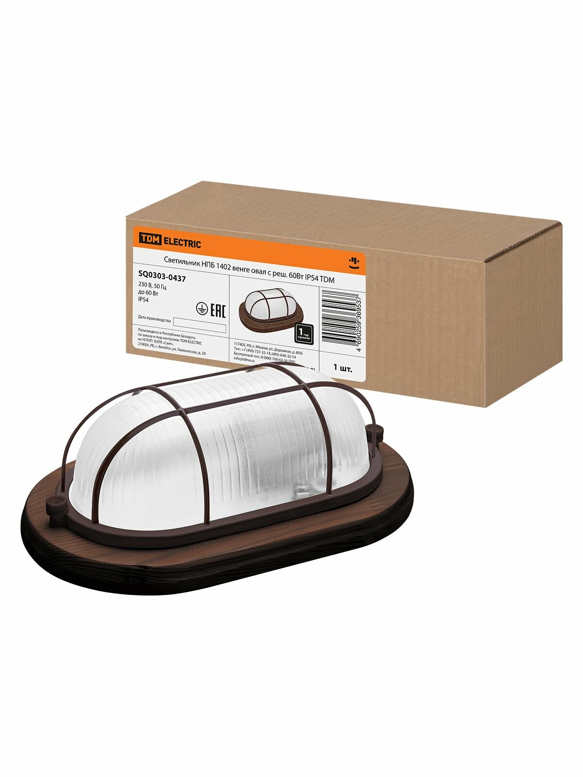 Светильник Tdm Electric НПБ1402, овал с решеткой, 60 Вт, IP54, венге