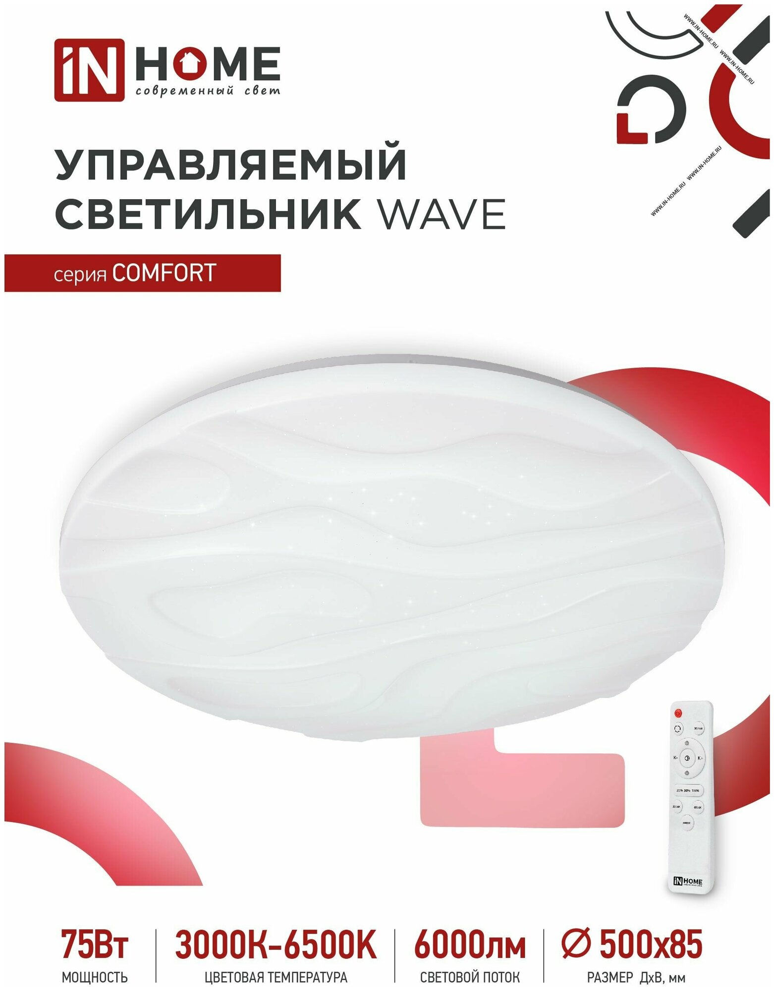 Настенно-потолочный светильник IN Home COMFORT WAVE 75Вт 230В 3000-6500К 6000лм 500х85мм с пультом ДУ 4690612034836