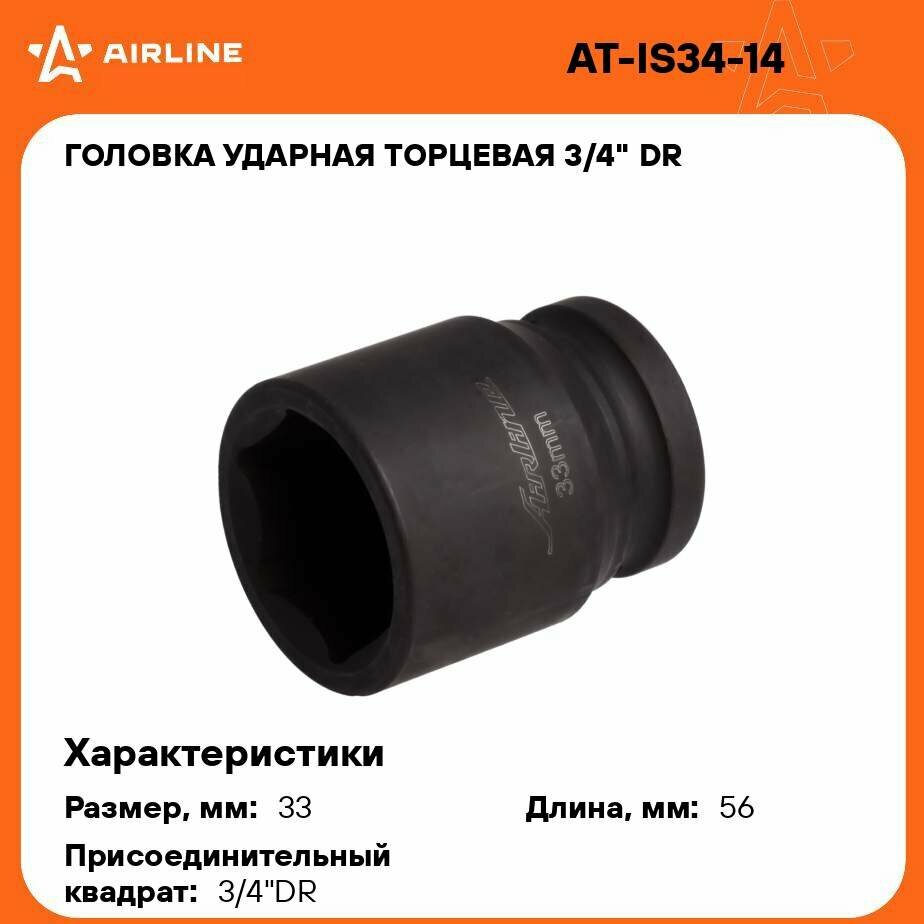 Купить Головка ударная торцевая 3/4" DR шестигранная 33мм L=56 мм AT-IS34-14 AIRLINE