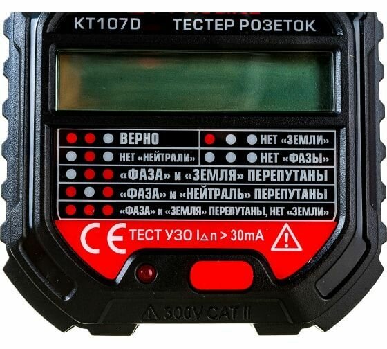 Тестер розеток и УЗО КТ 107D PROLINE