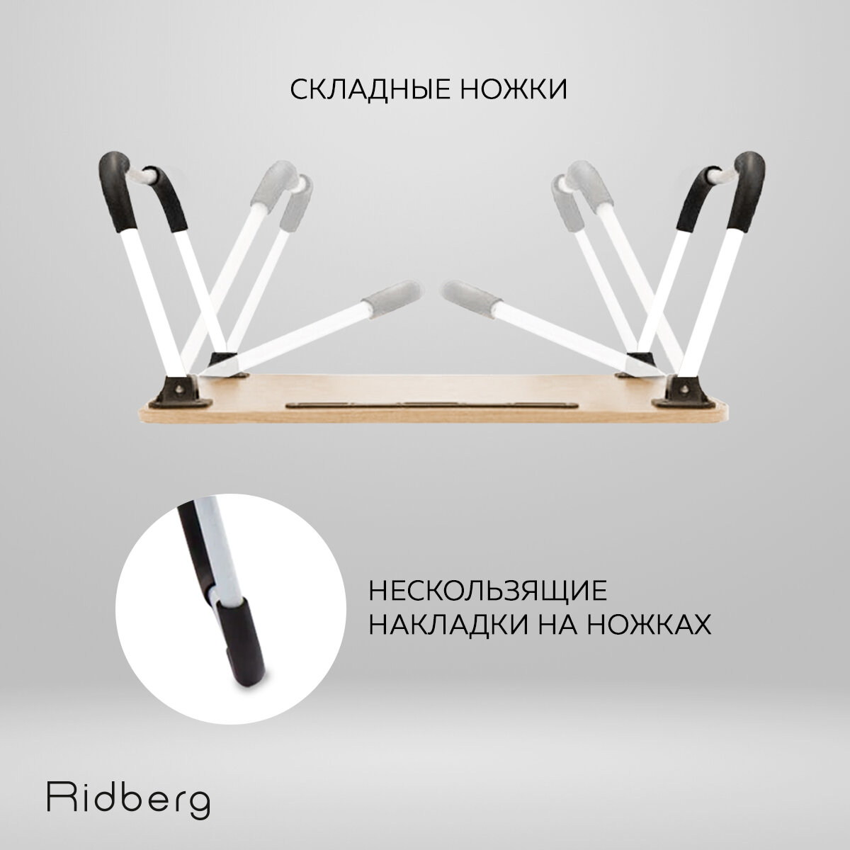 Столик складной для ноутбука в кровать Ridberg RTR-60В (TR-60) черный / подставка для ноутбука, для завтрака