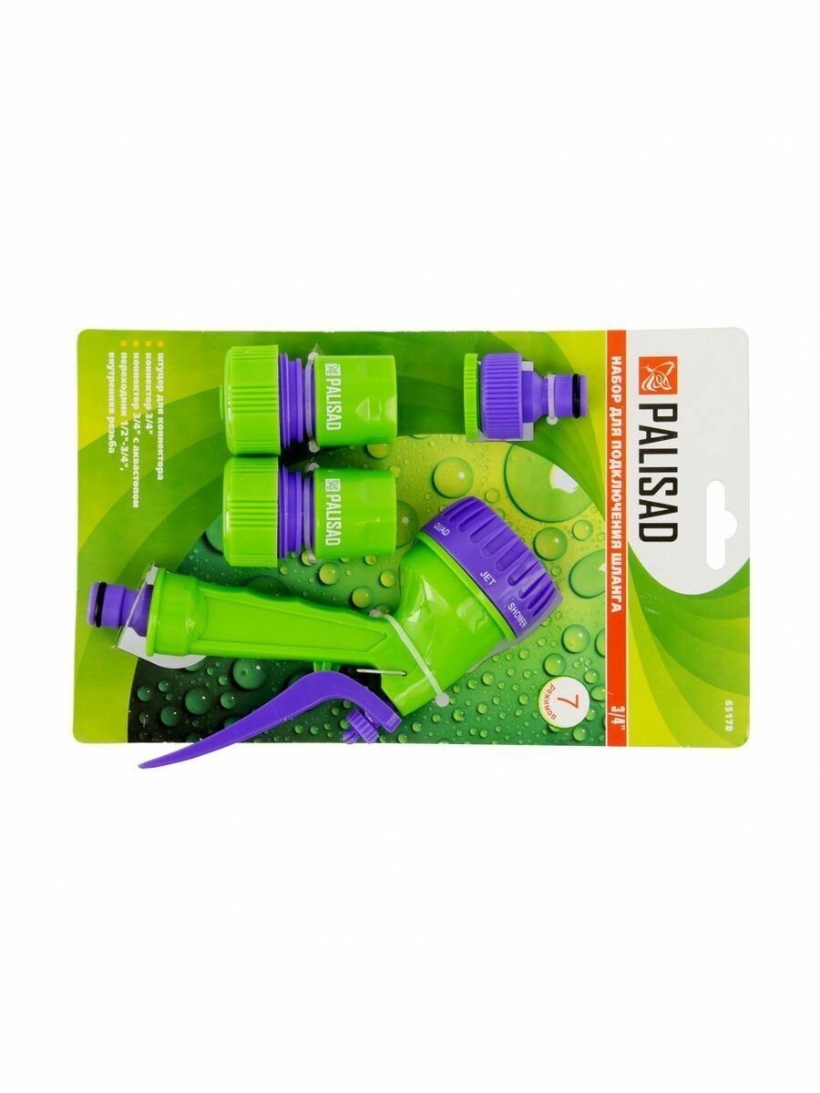 Набор для подключения шланга 3/4" (пистолет 7 режимов, адаптер, 2 соединителя)// Palisad 65178 .