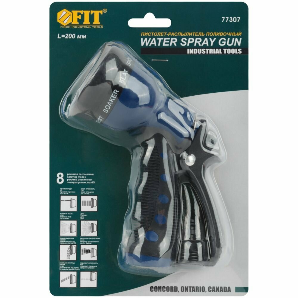 Пистолет для полива, 8 режимов, 200мм FIT