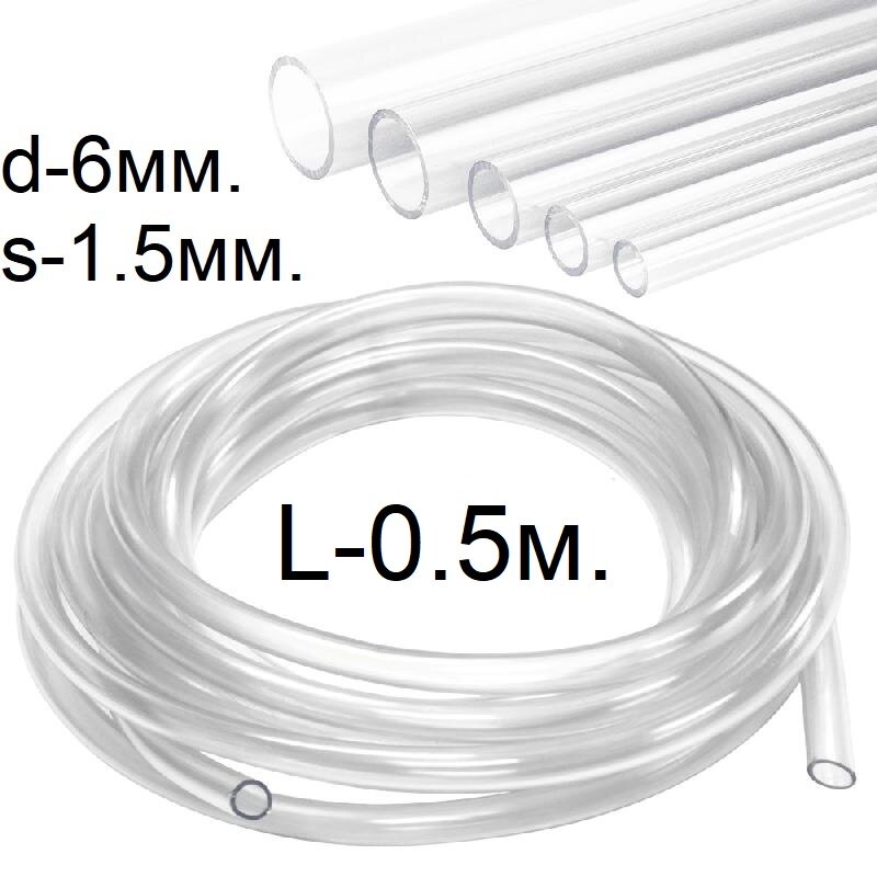 Купить Шланг (трубка) ПВХ прозрачный d-6(9)мм. 0.5м. (50см.)