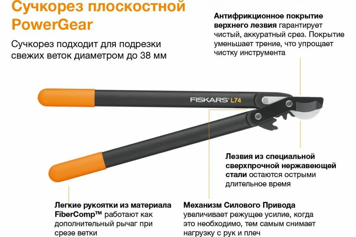 Сучкорез садовый плоскостной FISKARS L74 PowerGear (1000582) кусторез, ножницы для кустов, цветов, веток