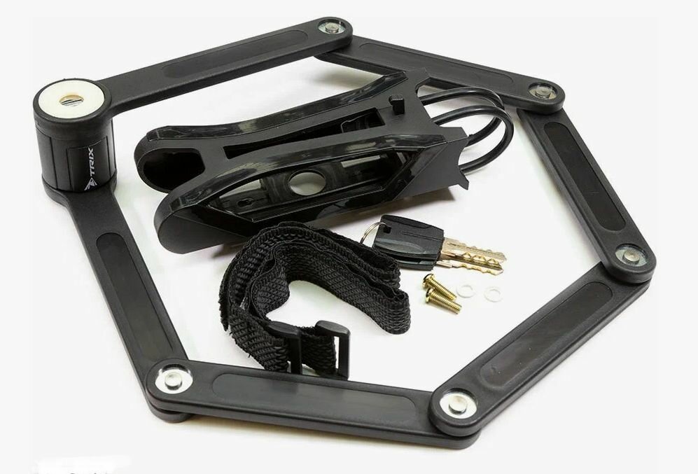 Замок противоугонный TRIX, складной, с ключами, 57х850мм, 6 стальных пластин в пластиковой оболочке, черный интересное: