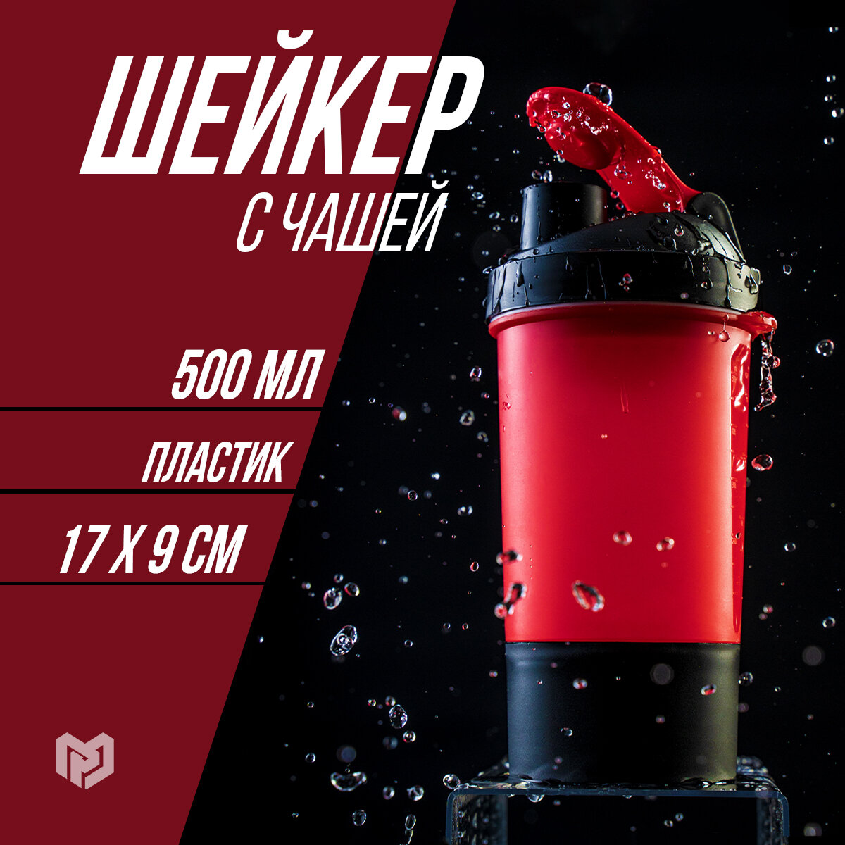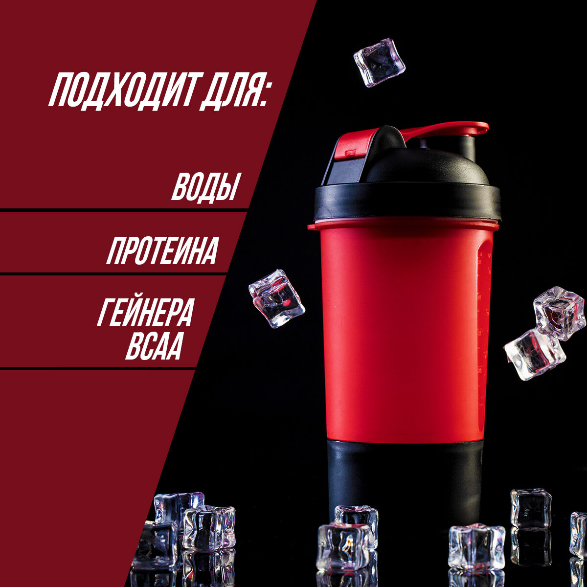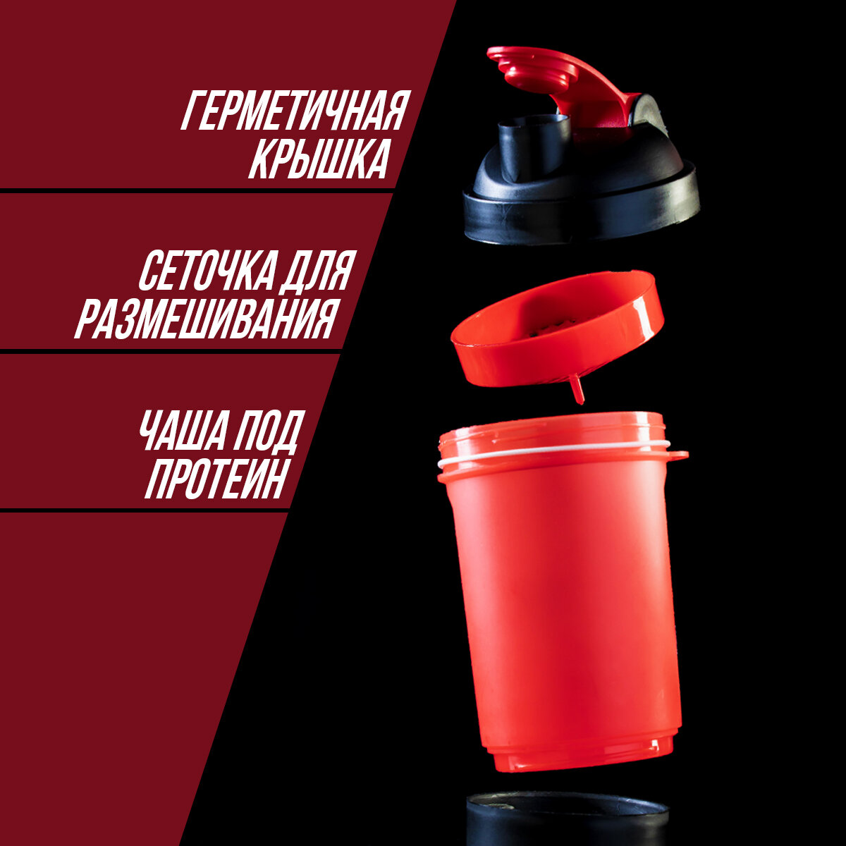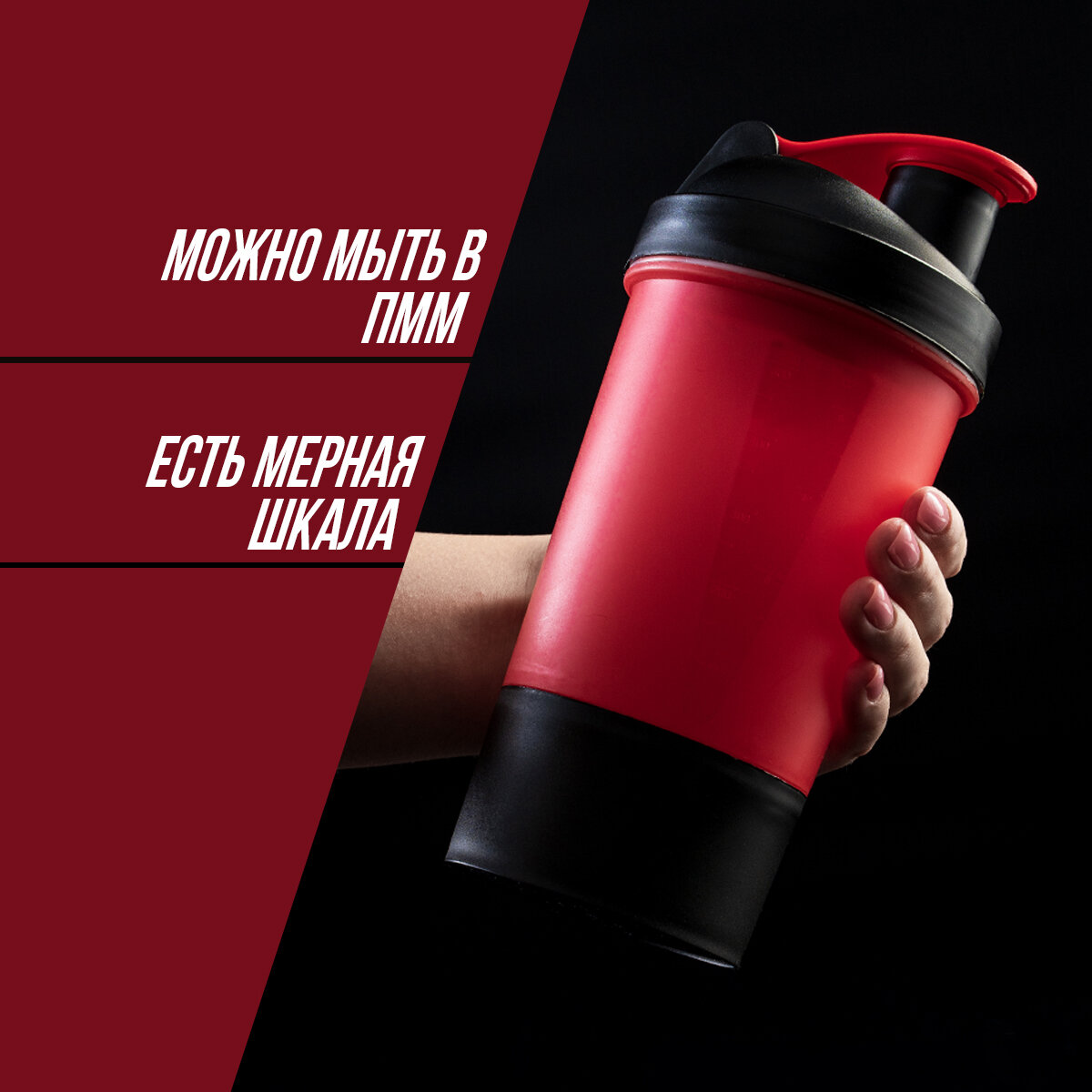Шейкер спортивный SVOBODA VOLI с чашей под протеин, красно-чёрный, 500 мл интересное: