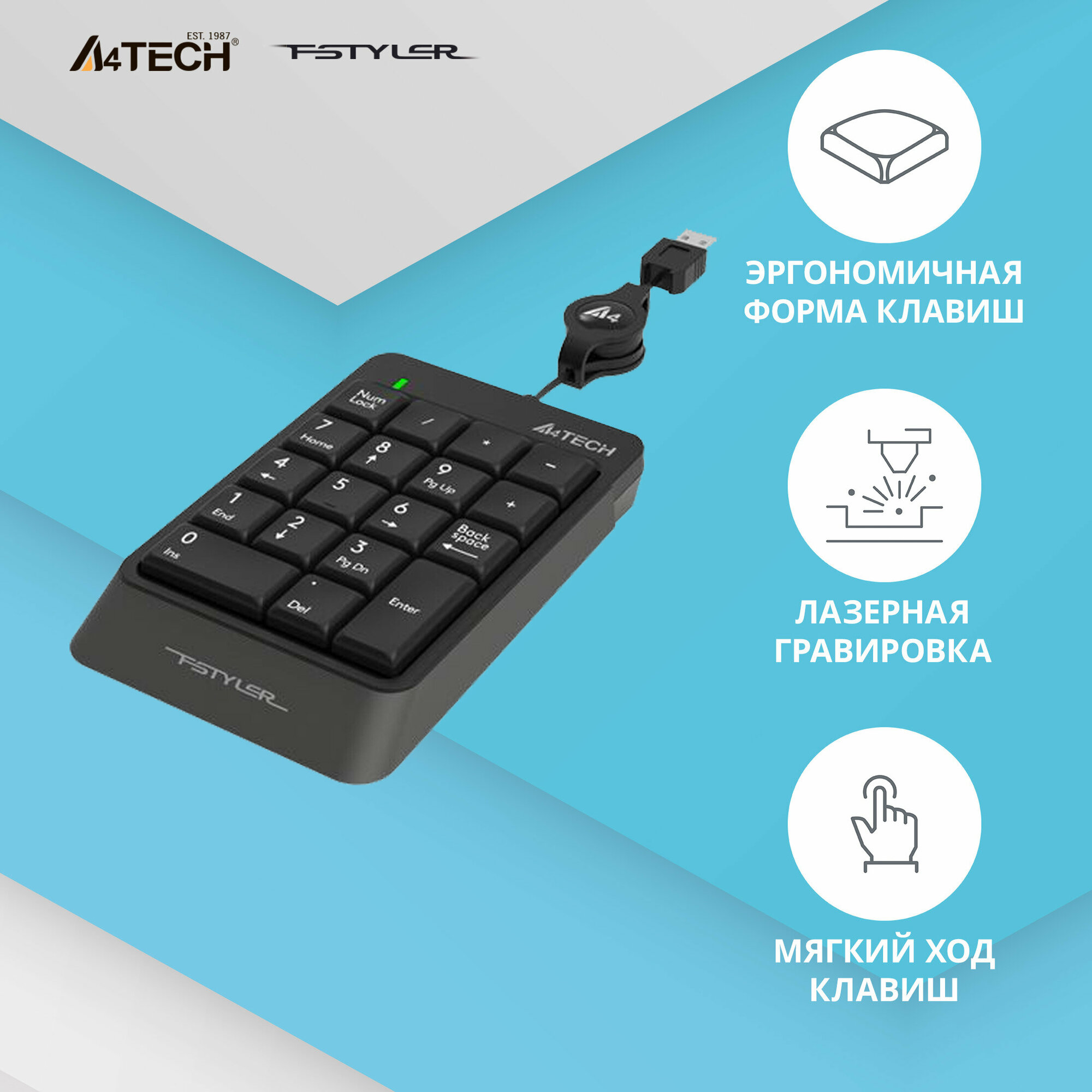 Купить Клавиатура (Числовой блок) A4Tech Fstyler FK13 серый USB slim для ноутбука, 1700439