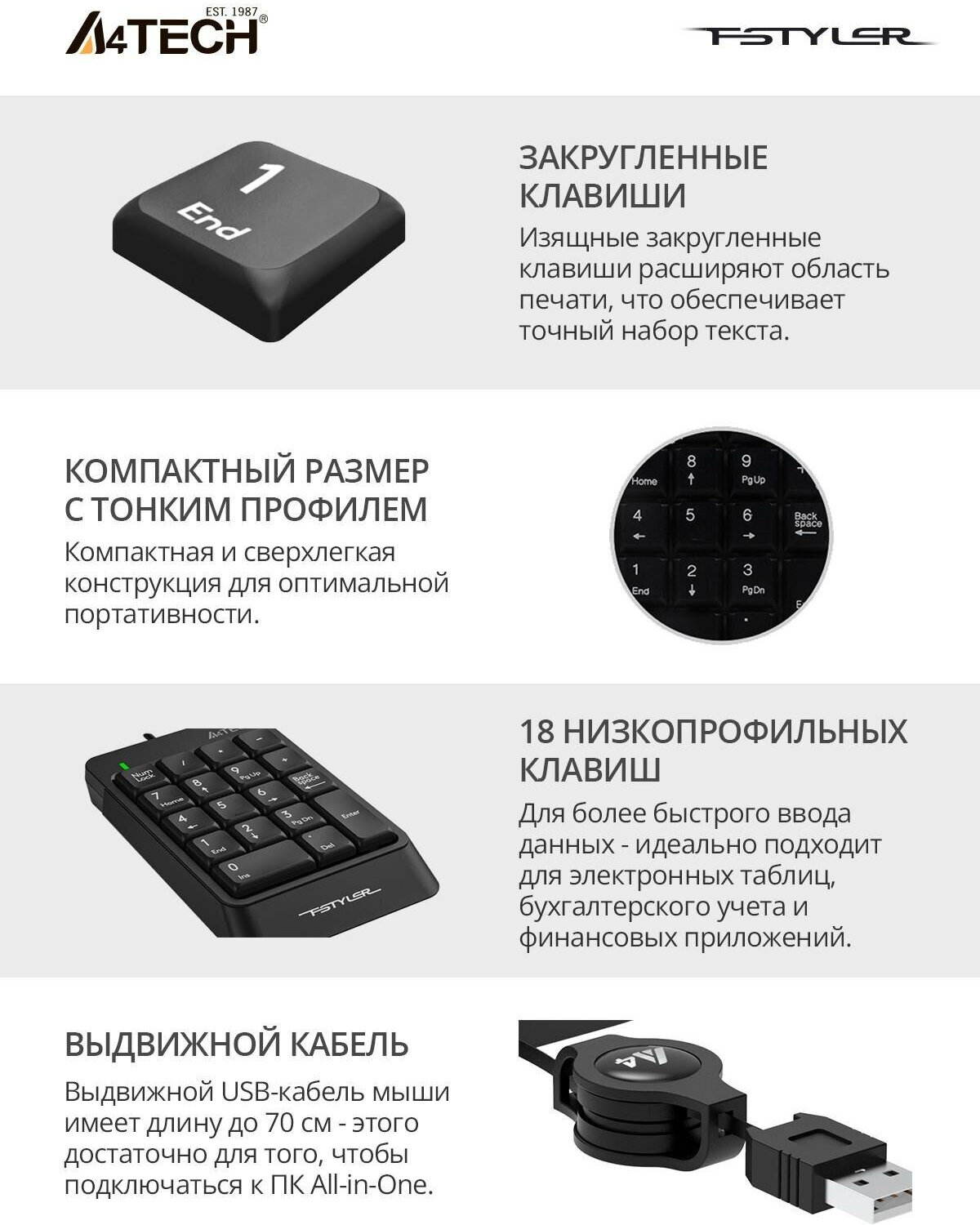 Клавиатура (Числовой блок) A4Tech Fstyler FK13 серый USB slim для ноутбука, 1700439 интересное: