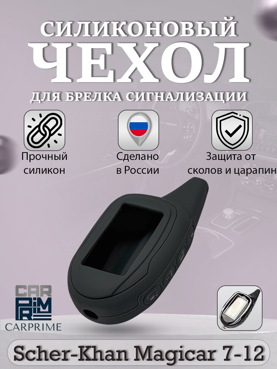 Чехол силиконовый Carprime для брелока ( пульта ) автосигнализации Scher-khan Magicar 7 / 12 (Цвет черный)