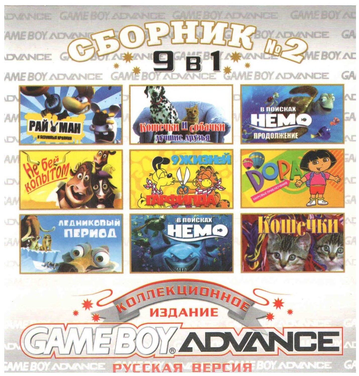 9в1 Сборник 2: Лед. период/В поисках Немо/Дора/Гарфилд/Кошечки/Не бей копытом GBA рус. вер. 512М интересное: