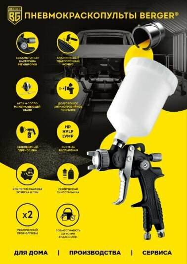 Пневматический краскопульт Berger BG грау HP 2.0 мм, верхний бачок BG1370 интересное: