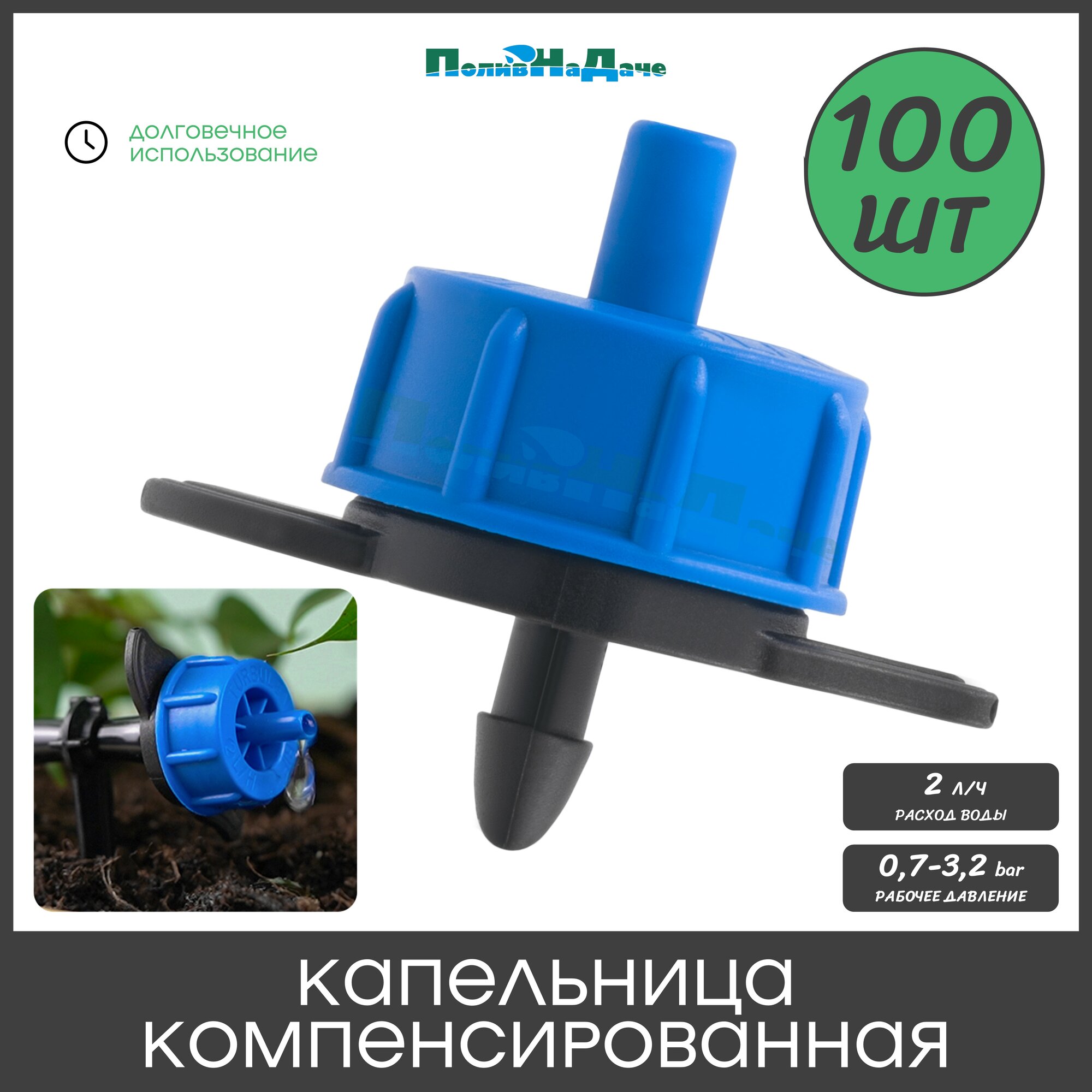 | Комплектация | Капельница компенсированная с лабиринтом разборная, 1/4", 0,7-3,2 bar |