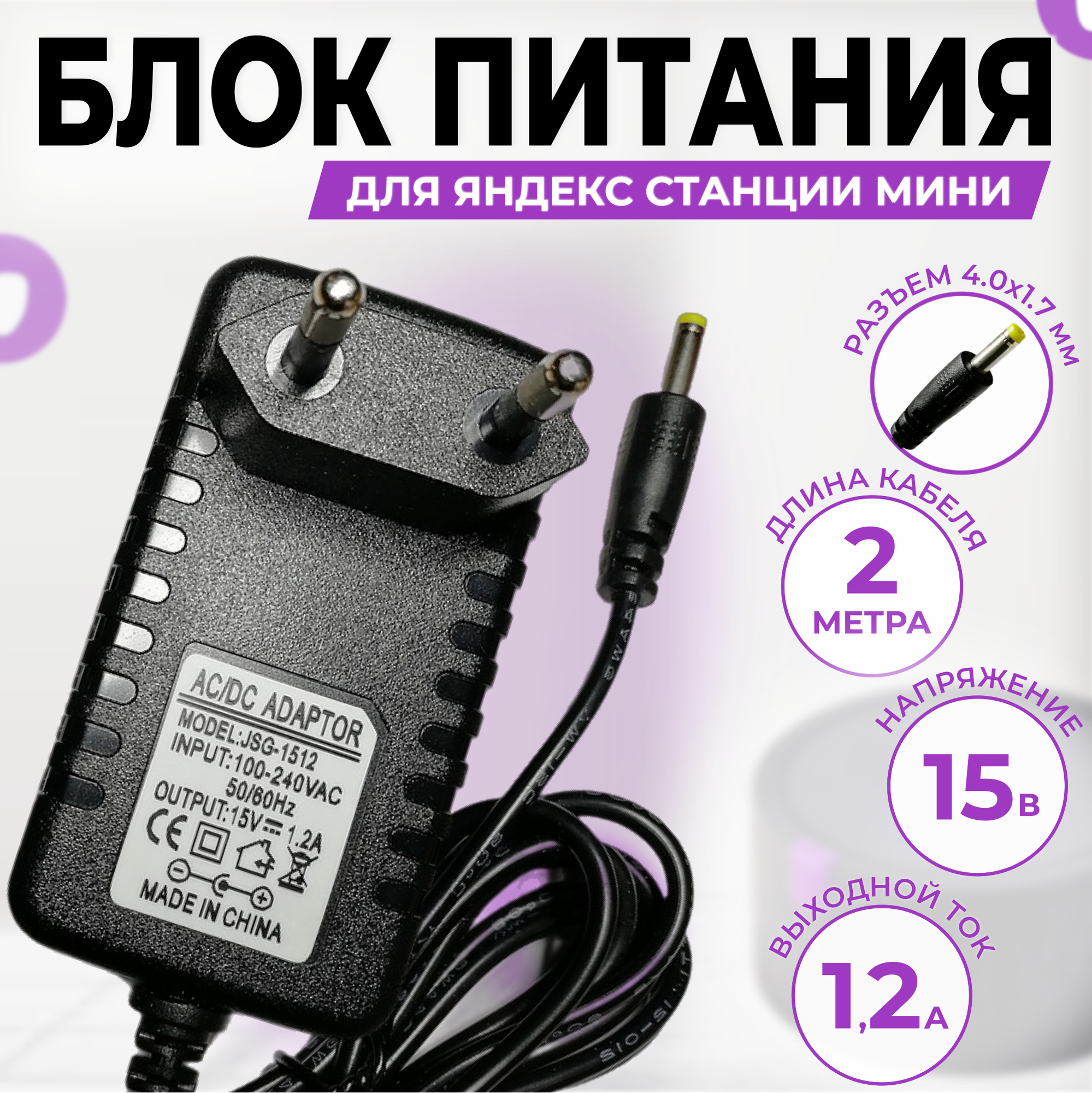 Зарядное устройство для Яндекс Станции мини 2 15V 1.2A (YNDX-00021, YNDX-00020) кабель 2 метра интересное: