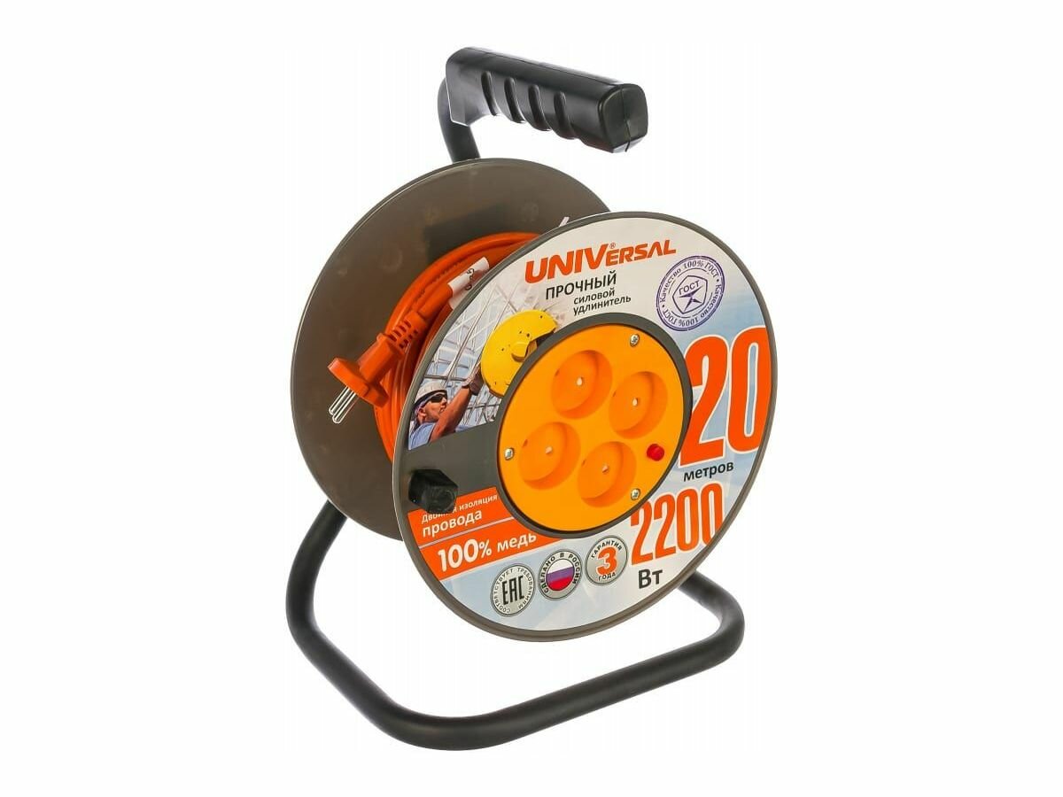 Удлинитель на катушке Universal 4х20м без заземл. 10А IP20 ВЕМ-250 термо ПВС 2х1, 9632896