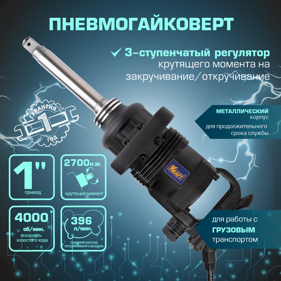 Гайковерт Пневматический Ударный 1'' 2700 Н.м. Kraft арт. KT 707011 интересное: