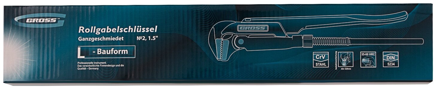 Ключ трубный рычажный 1.5, №2, цельнокованый, CrV, тип "L" Gross, арт. 15603