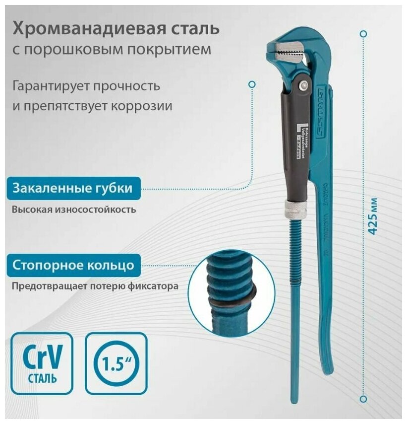 Купить Gross Ключ трубный рычажный, №2, 1,5", цельнокованый, CrV, тип - "L", Gross
