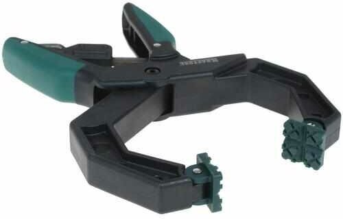 | Плюсы: | Быстрозажимная, лёгкая, удобная в работе, крепко зажимает, губки меняют угол под поверхность. |