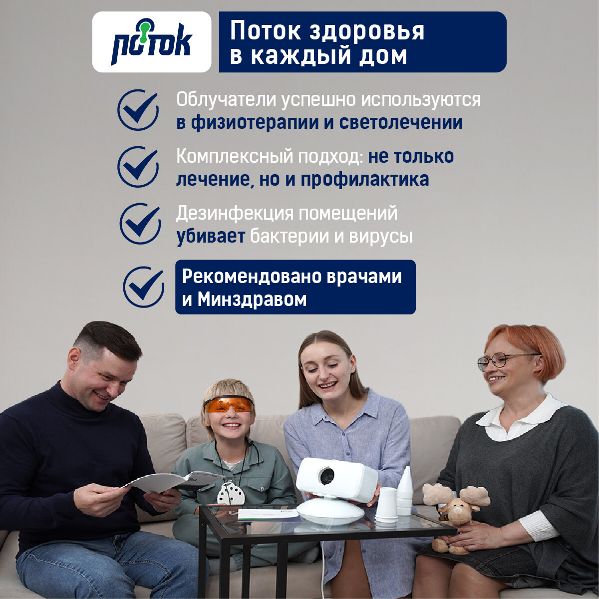 Кварцевый облучатель "Поток" с кнопкой включения, 3 в 1 : лечение профилактика и обеззараживание интересное: