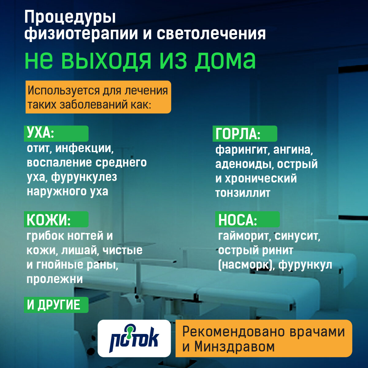 | Плюсы: | Полностью заменяет поход в поликлинику на процедуры.